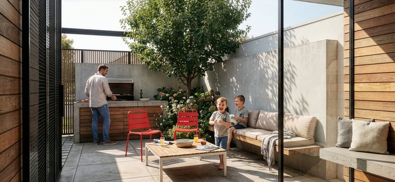From our studio in Fitzroy North, we apply this sensibility to the wider context. Whether for a coastal retreat or a major development, we construct a balance: heavy forms for shelter, and porous thresholds for connection. We establish a mindful dialogue with the site — anchoring the calm within, while opening up to the richness without.